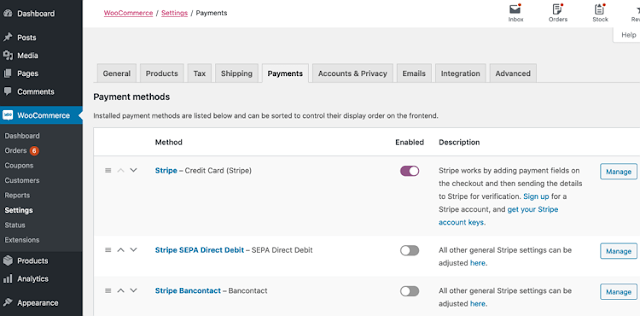 Now it's time to add Stripe payment gateway service to your online store. In this tutorial, we will take an example of how to add Stripe payment gateway to WooCommerce. The process of adding is simple and takes only a few minutes as follows: